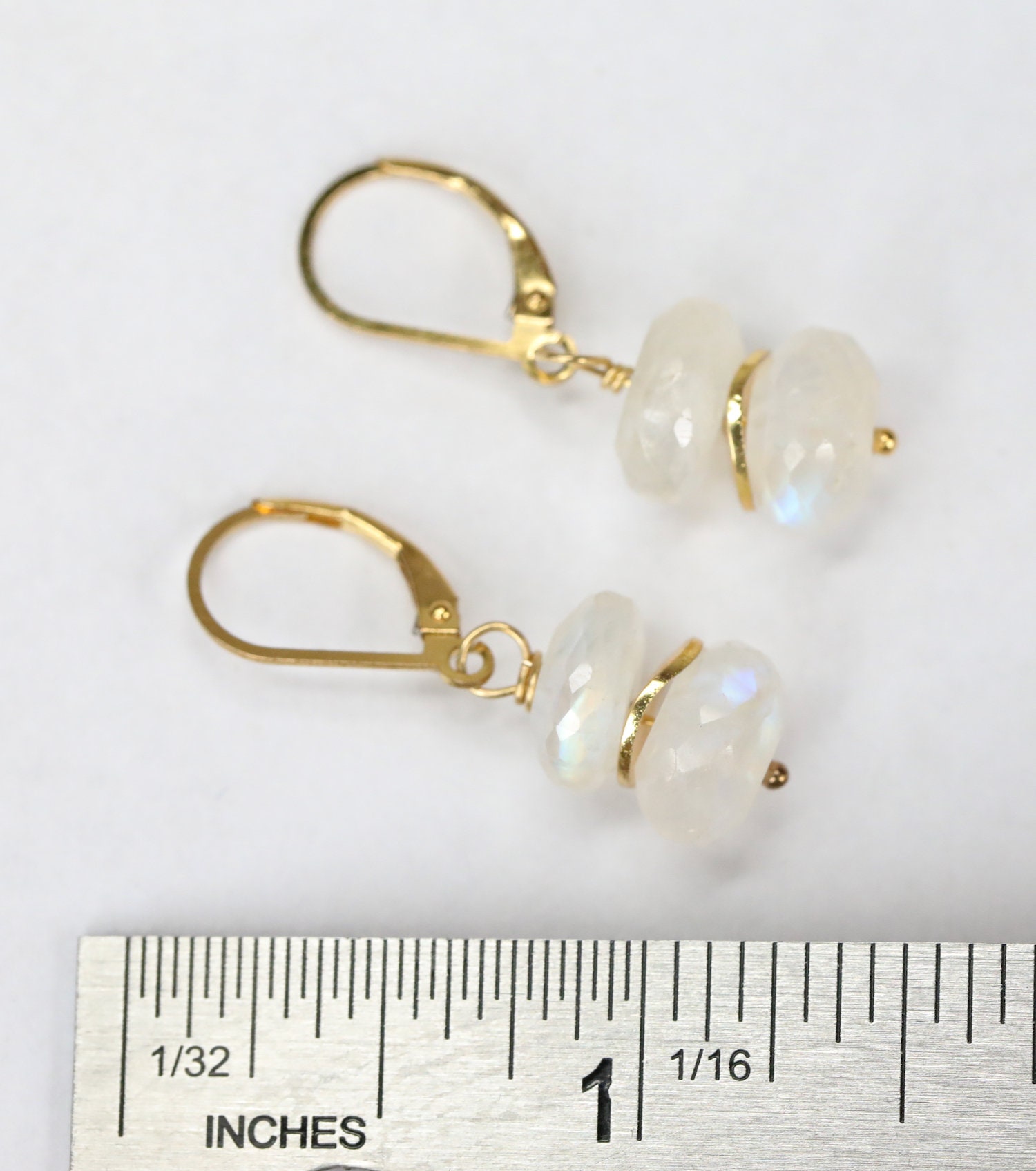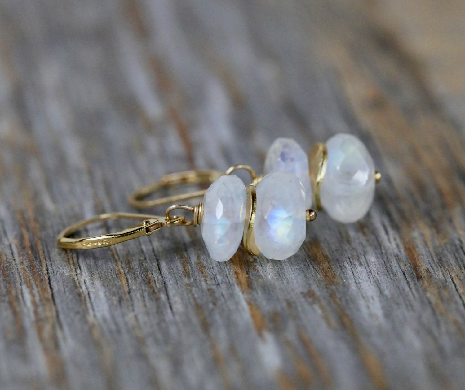 These are faceted rainbow moonstone gemstone earrings